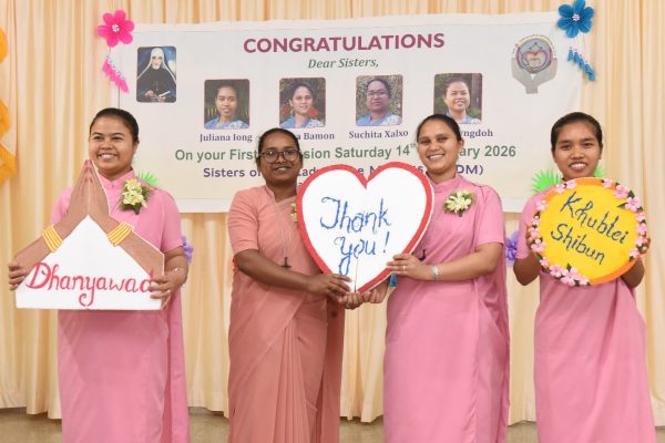 We joyfully congratulate our four sisters—Juliana Iong, Rihaka Bamon, Suchita Xalxo, and Sunita Lyngdoh—on the occasion of their First Profession on 9 February 2026.