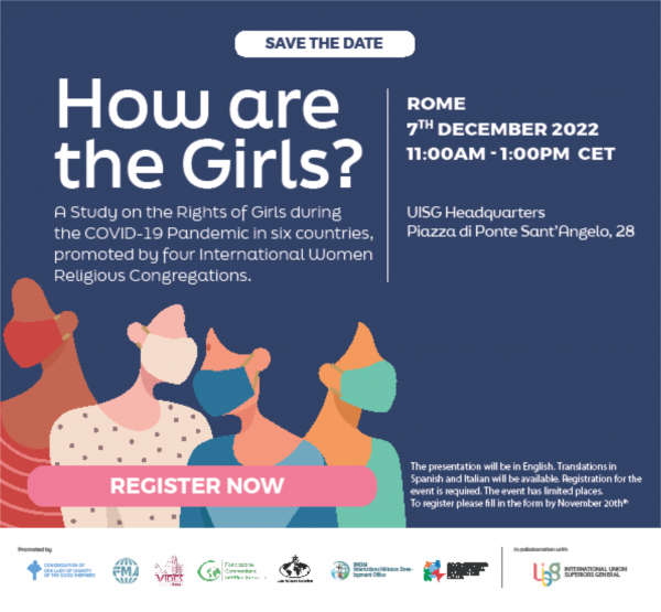 Four major women religious Congregations presented a study regarding the rights of girls during the Covid-19 pandemic in 6 countries at an event hosted at the headquarters of the International Union of Superiors General (UISG) in Rome on December 7. The Sisters of Our Lady of the Missions, Sisters of Charity of the Good Shepherd, the Salesian Sisters and the Comboni Missionary Sisters – have been collaborating on a study entitled How are the girls?
